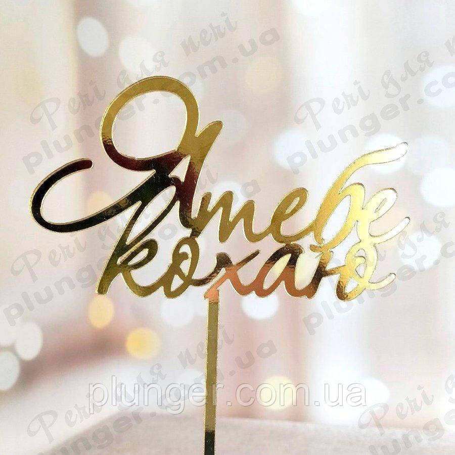 Топер, декор для кондитерських виробів дзеркальний Я тебе кохаю